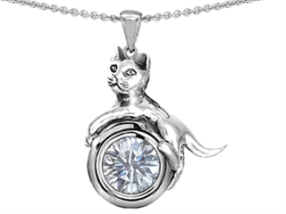 This delightful Original Star K(tm) Cat Lover Pendant with April Birthstone Genuine White Topaz, crafted in .925 Sterling Silver. This attractive design is mounted with 1 stone prong set colorless Round White Topaz eye clean clarity. This product measures 18.00 mm wide, 24.00 mm long. Free 18 inches Sterling Silver Chain included Designer: Star K - This beautiful design, is part of the exclusive Star K. jewelry collection. Star K. designs are copyrighted, so please be aware of cheap imitations selling online. Only original Star K. creations are made using the highest quality materials and craftsmanship, backed by an exclusive Lifetime Warranty. Warranty: - This item is covered by Finejewelers exclusive Silver Shield Lifetime Warranty. This exclusive lifetime coverage is offered ONLY by Finejewelers so please shop with confidence, our quality is guaranteed for life!