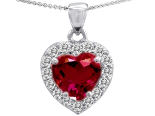 The impressive Original Star K(tm) Heart Shaped Created 8mm Ruby Pendant, crafted in .925 Sterling Silver. This attractive design is set with 1 stone prong set red Heart Shape Created Ruby clean clarity, 16 stones prong set colorless Round Brilliant Cubic Zirconia. This product measures 12.00 mm wide, 19.00 mm long. Ruby is July Birthstone: From the Latin 'ruber' meaning 'red'. King of gems and a symbol of royalty, it is said to inspire love, passion, confidence and leadership. Free 18 inches chain included Designer: Star K - This beautiful design, is part of the exclusive Star K. jewelry collection. Star K. designs are copyrighted, so please be aware of cheap imitations selling online. Only original Star K. creations are made using the highest quality materials and craftsmanship, backed by an exclusive Lifetime Warranty. Warranty: - This item is covered by Finejewelers exclusive Silver Shield Lifetime Warranty. This exclusive lifetime coverage is offered ONLY by Finejewelers so please shop with confidence, our quality is guaranteed for life!