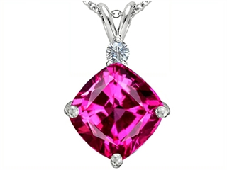 The attractive Original Star K(tm) Large 12mm Cushion Cut Created Pink Sapphire Pendant, crafted in 925 Sterling Silver. This attractive design is mounted with 1 stone prong set pink Cushion Cut Created Pink Sapphire, 1 stone prong set colorless Round Cubic Zirconia. This design measures 15.00 mm wide, 24.00 mm long. Sapphire is September Birthstone: From the Latin 'sapphirus' meaning 'blue'. A symbol for truth and sincerity, it inspires spiritual enlightenment, health and inner peace. Free 18 inches Sterling Silver Chain included Designer: Star K - This beautiful design, is part of the exclusive Star K. jewelry collection. Star K. designs are copyrighted, so please be aware of cheap imitations selling online. Only original Star K. creations are made using the highest quality materials and craftsmanship, backed by an exclusive Lifetime Warranty. Warranty: - This item is covered by Finejewelers exclusive Silver Shield Lifetime Warranty. This exclusive lifetime coverage is offered ONLY by Finejewelers so please shop with confidence, our quality is guaranteed for life!