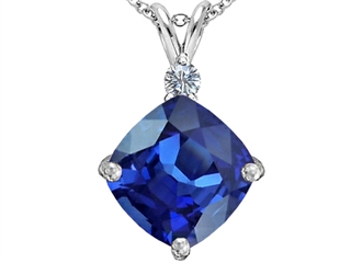 This dazzling Original Star K(tm) Large 12mm Cushion Cut Created Sapphire Pendant, crafted in 925 Sterling Silver. This amazing design is mounted with 1 stone prong set blue Cushion Cut Created Sapphire, 1 stone prong set colorless Round Cubic Zirconia. This style measures 15.00 mm wide, 24.00 mm long. Sapphire is September Birthstone: From the Latin 'sapphirus' meaning 'blue'. A symbol for truth and sincerity, it inspires spiritual enlightenment, health and inner peace. Free 18 inches Sterling Silver Chain included Designer: Star K - This beautiful design, is part of the exclusive Star K. jewelry collection. Star K. designs are copyrighted, so please be aware of cheap imitations selling online. Only original Star K. creations are made using the highest quality materials and craftsmanship, backed by an exclusive Lifetime Warranty. Warranty: - This item is covered by Finejewelers exclusive Silver Shield Lifetime Warranty. This exclusive lifetime coverage is offered ONLY by Finejewelers so please shop with confidence, our quality is guaranteed for life!