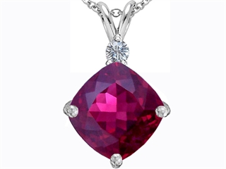 The alluring Original Star K(tm) Large 12mm Cushion Cut Created Ruby Pendant, crafted in 925 Sterling Silver. This beautiful design is set with 1 stone prong set red Cushion Cut Created Ruby, 1 stone prong set colorless Round Cubic Zirconia. This style measures 15.00 mm wide, 24.00 mm long. Ruby is July Birthstone: From the Latin 'ruber' meaning 'red'. King of gems and a symbol of royalty, it is said to inspire love, passion, confidence and leadership. Free 18 inches Sterling Silver Chain included Designer: Star K - This beautiful design, is part of the exclusive Star K. jewelry collection. Star K. designs are copyrighted, so please be aware of cheap imitations selling online. Only original Star K. creations are made using the highest quality materials and craftsmanship, backed by an exclusive Lifetime Warranty. Warranty: - This item is covered by Finejewelers exclusive Silver Shield Lifetime Warranty. This exclusive lifetime coverage is offered ONLY by Finejewelers so please shop with confidence, our quality is guaranteed for life!