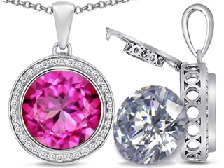 The amazing Switch-It Gems(tm) 2in1 Round 10mm Simulated Pink Tourmaline Pendant with Interchangeable Simulated Diamond Included, crafted in 925 Sterling Silver. This amazing design is mounted with 32 stones channel set colorless Round Brilliant Cubic Zirconia. This design measures 14.00 mm wide, 22.00 mm long. Free 18 inches chain included 2 Round 10mm Simulated Birthstone Included Switch-It Gem(tm) Designs are protected by US Copyright and Patent Laws Warranty: - This item is covered by Finejewelers exclusive Silver Shield Lifetime Warranty. This exclusive lifetime coverage is offered ONLY by Finejewelers so please shop with confidence, our quality is guaranteed for life!
