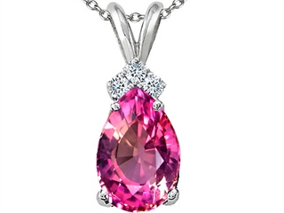 The amazing Tommaso Design(tm) Created Pink Sapphire and Genuine Diamonds Pendant, crafted in 14 kt White Gold. This beautiful design is mounted with 1 stone prong set pink Pear Shape Created Pink Sapphire clean clarity, 3 stones prong set Round Brilliant Diamond K color I3 clarity. This product measures 8.00 mm wide, 17.00 mm long. Sapphire is September Birthstone: From the Latin 'sapphirus' meaning 'blue'. A symbol for truth and sincerity, it inspires spiritual enlightenment, health and inner peace. Diamond is April Birthstone: From the Greek 'adamas' meaning 'invincible'. A symbol of enduring love, it is believed to bring the wearer luck and success. Free 18 inches chain included Designer: Tommaso design Studio - This classic design, is made by the renowned Tommaso Design Studio. Tommaso creations are copyrighted, so please be aware of cheap imitations selling online. Only original Tommaso designs are made using the highest quality materials and craftsmanship, backed by an exclusive Lifetime Warranty. Warranty: - This item is covered by Finejewelers exclusive Silver Shield Lifetime Warranty. This exclusive lifetime coverage is offered ONLY by Finejewelers so please shop with confidence, our quality is guaranteed for life!