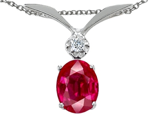 The dazzling Tommaso Design(tm) Created Ruby Oval 8x6mm and Genuine Diamond Pendant, crafted in 14 kt White Gold. This amazing design is set with 1 stone prong set red Oval Created Ruby, 1 stone prong set Round Brilliant Diamond K color I3 clarity. This design measures 14.00 mm wide, 17.00 mm long. Ruby is July Birthstone: From the Latin 'ruber' meaning 'red'. King of gems and a symbol of royalty, it is said to inspire love, passion, confidence and leadership. Diamond is April Birthstone: From the Greek 'adamas' meaning 'invincible'. A symbol of enduring love, it is believed to bring the wearer luck and success. Free 18 inches chain included Designer: Tommaso design Studio - This classic design, is made by the renowned Tommaso Design Studio. Tommaso creations are copyrighted, so please be aware of cheap imitations selling online. Only original Tommaso designs are made using the highest quality materials and craftsmanship, backed by an exclusive Lifetime Warranty. Warranty: - This item is covered by Finejewelers exclusive Silver Shield Lifetime Warranty. This exclusive lifetime coverage is offered ONLY by Finejewelers so please shop with confidence, our quality is guaranteed for life!