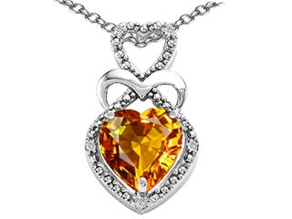 This impressing Tommaso Design(tm) Heart Shape 8 mm Genuine Citrine and Diamond Pendant, available in 14 kt Yellow Gold and 14 kt White Gold. This attractive design is set with 1 stone 1.20 carats prong set medium to dark yellow-orange Heart Shape Citrine, 5 stones 0.03 carats prong set Round Brilliant Diamond K color I3 clarity. This product measures 10.00 mm wide, 18.00 mm long. Citrine is November Birthstone: From the French 'citron' for 'lemon'. A symbol of success, is said to protect against sudden death and increase success and prosperity. Diamond is April Birthstone: From the Greek 'adamas' meaning 'invincible'. A symbol of enduring love, it is believed to bring the wearer luck and success. Free 18 inches chain included Designer: Tommaso design Studio - This classic design, is made by the renowned Tommaso Design Studio. Tommaso creations are copyrighted, so please be aware of cheap imitations selling online. Only original Tommaso designs are made using the highest quality materials and craftsmanship, backed by an exclusive Lifetime Warranty. Warranty: - This item is covered by Finejewelers exclusive Silver Shield Lifetime Warranty. This exclusive lifetime coverage is offered ONLY by Finejewelers so please shop with confidence, our quality is guaranteed for life!. Metal Available: 14 kt Yellow Gold, 14 kt White Gold.