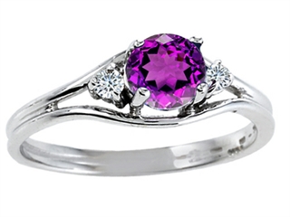 This beautiful Tommaso Design(tm) Round Genuine Amethyst and Diamond Ring, available in 14 kt Yellow Gold and 14 kt White Gold. This beautiful design is set with 1 stone 0.30 carats prong set medium to dark violet Round Amethyst, 2 stones 0.04 carats prong set Round Brilliant Diamond K color I3 clarity. This product measures 10.00 mm wide, 7.00 mm long. Amethyst is February Birthstone: From the Greek 'amethystos' meaning 'sober'. A symbol of trust, Amethyst is thought to protect against seduction and provide peace. Diamond is April Birthstone: From the Greek 'adamas' meaning 'invincible'. A symbol of enduring love, it is believed to bring the wearer luck and success. Designer: Tommaso design Studio - This classic design, is made by the renowned Tommaso Design Studio. Tommaso creations are copyrighted, so please be aware of cheap imitations selling online. Only original Tommaso designs are made using the highest quality materials and craftsmanship, backed by an exclusive Lifetime Warranty. Warranty: - This item is covered by Finejewelers exclusive Silver Shield Lifetime Warranty. This exclusive lifetime coverage is offered ONLY by Finejewelers so please shop with confidence, our quality is guaranteed for life!. Metal Available: 14 kt Yellow Gold, 14 kt White Gold.