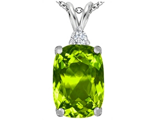 The stunning Original Star K(tm) Large 14x10mm Cushion Cut Simulated Peridot Pendant, crafted in 925 Sterling Silver. This amazing design is mounted with 1 stone prong set green-yellow Cushion Cut Simulated Peridot, 1 stone prong set colorless Round Cubic Zirconia. This style measures 10.00 mm wide, 23.00 mm long. Peridot is August Birthstone: From the Greek 'Peridona' for 'giving plenty'. A symbol of the sun, Peridot is thought to bring good luck, peace, protection and success. Free 18 inches Sterling Silver Chain included Designer: Star K - This beautiful design, is part of the exclusive Star K. jewelry collection. Star K. designs are copyrighted, so please be aware of cheap imitations selling online. Only original Star K. creations are made using the highest quality materials and craftsmanship, backed by an exclusive Lifetime Warranty. Warranty: - This item is covered by Finejewelers exclusive Silver Shield Lifetime Warranty. This exclusive lifetime coverage is offered ONLY by Finejewelers so please shop with confidence, our quality is guaranteed for life!