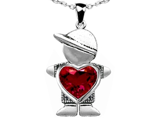 This amazing Original Star K(tm) Little Boy Holding 8mm Heart Mother Birthstone Pendant Created Ruby, crafted in .925 Sterling Silver. This attractive design is mounted with 1 stone prong set red Heart Shape Created Ruby. This style measures 15.00 mm wide, 26.00 mm long. Ruby is July Birthstone: From the Latin 'ruber' meaning 'red'. King of gems and a symbol of royalty, it is said to inspire love, passion, confidence and leadership. Designer: Star K - This beautiful design, is part of the exclusive Star K. jewelry collection. Star K. designs are copyrighted, so please be aware of cheap imitations selling online. Only original Star K. creations are made using the highest quality materials and craftsmanship, backed by an exclusive Lifetime Warranty. Warranty: - This item is covered by Finejewelers exclusive Silver Shield Lifetime Warranty. This exclusive lifetime coverage is offered ONLY by Finejewelers so please shop with confidence, our quality is guaranteed for life!
