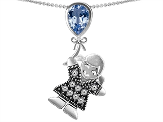 The stunning Original Star K(tm) Little Girl Holding a Balloon Mother Birthstone Simulated Aquamarine Pendant, crafted in 925 Sterling Silver. This attractive design is mounted with 1 stone prong set faint blue Pear Shape Simulated Aquamarine. This design measures 18.00 mm wide, 35.00 mm long. Aquamarine is March Birthstone: From the latin `aqua` and `mare` meaning 'sea water'. Aquamarine is said to provide everlasting youth, courage, and happiness. Free 18 inches Sterling Silver Chain included Designer: Star K - This beautiful design, is part of the exclusive Star K. jewelry collection. Star K. designs are copyrighted, so please be aware of cheap imitations selling online. Only original Star K. creations are made using the highest quality materials and craftsmanship, backed by an exclusive Lifetime Warranty. Warranty: - This item is covered by Finejewelers exclusive Silver Shield Lifetime Warranty. This exclusive lifetime coverage is offered ONLY by Finejewelers so please shop with confidence, our quality is guaranteed for life!
