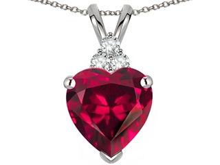 The stunning Tommaso Design(tm) Heart Shape 8mm Created Ruby and Genuine Diamond Heart Pendant, available in 14 kt Yellow Gold and 14 kt White Gold. This beautiful design is mounted with 1 stone prong set red Heart Shape Created Ruby, 3 stones prong set Round Brilliant Diamond K color I3 clarity. This product measures 8.00 mm wide, 14.00 mm long. Ruby is July Birthstone: From the Latin 'ruber' meaning 'red'. King of gems and a symbol of royalty, it is said to inspire love, passion, confidence and leadership. Diamond is April Birthstone: From the Greek 'adamas' meaning 'invincible'. A symbol of enduring love, it is believed to bring the wearer luck and success. Free 18 inches chain included Designer: Tommaso design Studio - This classic design, is made by the renowned Tommaso Design Studio. Tommaso creations are copyrighted, so please be aware of cheap imitations selling online. Only original Tommaso designs are made using the highest quality materials and craftsmanship, backed by an exclusive Lifetime Warranty. Warranty: - This item is covered by Finejewelers exclusive Silver Shield Lifetime Warranty. This exclusive lifetime coverage is offered ONLY by Finejewelers so please shop with confidence, our quality is guaranteed for life!. Metal Available: 14 kt Yellow Gold, 14 kt White Gold.