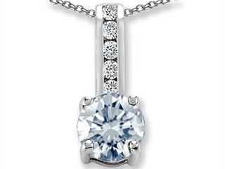 This stunning Genuine Aquamarine And Genuine Cubic Zirconia Pendant, crafted in .925 Sterling Silver. This amazing design is mounted with 1 stone 1.00 carats prong set faint blue Round Aquamarine clean clarity, 5 stones 0.15 carats prong set colorless Round Cubic Zirconia. This product measures 0.25 mm wide, 0.75 mm long. Aquamarine is March Birthstone: From the latin `aqua` and `mare` meaning 'sea water'. Aquamarine is said to provide everlasting youth, courage, and happiness. Free 18 inches chain included Warranty: - This item is covered by Finejewelers exclusive Silver Shield Lifetime Warranty. This exclusive lifetime coverage is offered ONLY by Finejewelers so please shop with confidence, our quality is guaranteed for life!