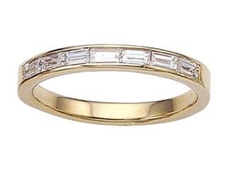 The attractive Karina B(tm) Baguette Diamonds Band, available in a range of metals including 18 kt Yellow Gold, 18 kt White Gold and Platinum 950. This attractive design is mounted with 7 stones 0.50 carats channel set Baguette Diamond G color VS1 - VS2 clarity. This style measures 2.80 mm wide. Diamond is April Birthstone: From the Greek 'adamas' meaning 'invincible'. A symbol of enduring love, it is believed to bring the wearer luck and success. Made in USA Designer: Karina B - Classic style, elegant design and perfect craftsmanship. This is the inspiration behind Karina B. Each design we create is produced with the latest technological advancements in computers and machinery. Every piece of jewelry manufactured is done from scratch according to the exact specifications of the design and stone sizes. Each precious stone is set with the guidance of a master stone setter, using the equipment that was not available in the past, to precise measurements of a hundredth of a millimeter. Combining our manufacturing techniques with high quality diamonds and precious stones along with Platinum or 18 KT gold gives you, the educated consumer, an exceptional masterpiece. If you are lucky enough to own a piece by Karina B., wear it with the confidence and pride of knowing that there is nothing made better. Warranty: - This item is covered by Finejewelers exclusive Silver Shield Lifetime Warranty. This exclusive lifetime coverage is offered ONLY by Finejewelers so please shop with confidence, our quality is guaranteed for life!. Metal Available: 18 kt Yellow Gold, 18 kt White Gold, Platinum 950.