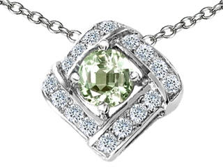 The dazzling Original Star K(tm) Genuine Green Amethyst Pendant, crafted in .925 Sterling Silver. This amazing design is set with 1 stone 0.80 carats prong set light green Round Green Amethyst clean clarity, 12 stones 0.24 carats prong set colorless Round Brilliant Cubic Zirconia. This design measures 0.50 Inches high, 0.50 Inches wide. Amethyst is February Birthstone: From the Greek 'amethystos' meaning 'sober'. A symbol of trust, Amethyst is thought to protect against seduction and provide peace. Free 18 inches chain included Designer: Star K - This beautiful design, is part of the exclusive Star K. jewelry collection. Star K. designs are copyrighted, so please be aware of cheap imitations selling online. Only original Star K. creations are made using the highest quality materials and craftsmanship, backed by an exclusive Lifetime Warranty. Warranty: - This item is covered by Finejewelers exclusive Silver Shield Lifetime Warranty. This exclusive lifetime coverage is offered ONLY by Finejewelers so please shop with confidence, our quality is guaranteed for life!