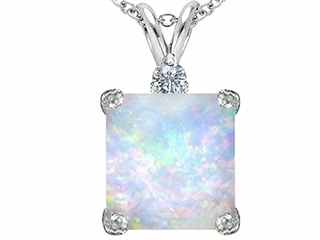 This alluring Original Star K(tm) Large 12mm Square Cut Created Opal Pendant, crafted in 925 Sterling Silver. This attractive design is mounted with 1 stone prong set white iridescent Square Created Opal, 1 stone prong set colorless Round Cubic Zirconia. This design measures 12.00 mm wide, 22.00 mm long. Opal is October Birthstone: From the Greek 'opallios', meaning 'colour change'. A symbol of hope and faithfulness, it inspires true love and brings confidence. Free 18 inches Sterling Silver Chain included Designer: Star K - This beautiful design, is part of the exclusive Star K. jewelry collection. Star K. designs are copyrighted, so please be aware of cheap imitations selling online. Only original Star K. creations are made using the highest quality materials and craftsmanship, backed by an exclusive Lifetime Warranty. Warranty: - This item is covered by Finejewelers exclusive Silver Shield Lifetime Warranty. This exclusive lifetime coverage is offered ONLY by Finejewelers so please shop with confidence, our quality is guaranteed for life!