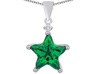 This attractive Original Star K(tm) Large 14mm Fancy Star Pendant with Simulated Emerald, crafted in 925 Sterling Silver. This attractive design is mounted with 1 stone prong set green Star Shape Simulated Emerald clean clarity, 1 stone prong set colorless Round Cubic Zirconia clean clarity. This style measures 17.00 mm wide, 26.00 mm long. Emerald is May Birthstone: From the French 'esmeralde' meaning 'green gem'. A symbol of immortality, it is said to improve memory, wisdom and intuition. Free 18 inches chain included Designer: Star K - This beautiful design, is part of the exclusive Star K. jewelry collection. Star K. designs are copyrighted, so please be aware of cheap imitations selling online. Only original Star K. creations are made using the highest quality materials and craftsmanship, backed by an exclusive Lifetime Warranty. Warranty: - This item is covered by Finejewelers exclusive Silver Shield Lifetime Warranty. This exclusive lifetime coverage is offered ONLY by Finejewelers so please shop with confidence, our quality is guaranteed for life!