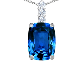 The alluring Original Star K(tm) Large 14x10mm Cushion Cut Simulated Blue Topaz Pendant, crafted in 925 Sterling Silver. This amazing design is mounted with 1 stone prong set medium to dark blue Cushion Cut Simulated Blue Topaz, 3 stones prong set colorless Round Cubic Zirconia. This style measures 10.00 mm wide, 23.00 mm long. Blue Topaz is December Birthstone: From the Greek 'topazos' meaning 'to seek'. Topaz is said to enhance spiritual potential, intelligence, creativity and wealth. Free 18 inches Sterling Silver Chain included Designer: Star K - This beautiful design, is part of the exclusive Star K. jewelry collection. Star K. designs are copyrighted, so please be aware of cheap imitations selling online. Only original Star K. creations are made using the highest quality materials and craftsmanship, backed by an exclusive Lifetime Warranty. Warranty: - This item is covered by Finejewelers exclusive Silver Shield Lifetime Warranty. This exclusive lifetime coverage is offered ONLY by Finejewelers so please shop with confidence, our quality is guaranteed for life!