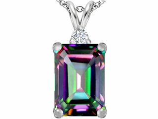 The impressive Original Star K(tm) Large 14x10mm Emerald Cut Rainbow Mystic Topaz Pendant, crafted in 925 Sterling Silver. This attractive design is set with 1 stone prong set multicolor Emerald Cut Mystic Topaz, 1 stone prong set colorless Round Cubic Zirconia. This design measures 10.00 mm wide, 23.00 mm long. Free 18 inches Sterling Silver Chain included Designer: Star K - This beautiful design, is part of the exclusive Star K. jewelry collection. Star K. designs are copyrighted, so please be aware of cheap imitations selling online. Only original Star K. creations are made using the highest quality materials and craftsmanship, backed by an exclusive Lifetime Warranty. Warranty: - This item is covered by Finejewelers exclusive Silver Shield Lifetime Warranty. This exclusive lifetime coverage is offered ONLY by Finejewelers so please shop with confidence, our quality is guaranteed for life!