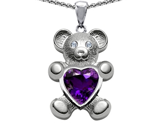 This alluring Original Star K(tm) Love Bear Holding Birthstone of February 8mm Heart Shape Simulated Amethyst, crafted in .925 Sterling Silver. This attractive design is mounted with 1 stone prong set violet Heart Shape Simulated Amethyst clean clarity. This product measures 14.00 mm wide, 22.00 mm long. Amethyst is February Birthstone: From the Greek 'amethystos' meaning 'sober'. A symbol of trust, Amethyst is thought to protect against seduction and provide peace. Free 18 inches Sterling Silver Chain included Designer: Star K - This beautiful design, is part of the exclusive Star K. jewelry collection. Star K. designs are copyrighted, so please be aware of cheap imitations selling online. Only original Star K. creations are made using the highest quality materials and craftsmanship, backed by an exclusive Lifetime Warranty. Warranty: - This item is covered by Finejewelers exclusive Silver Shield Lifetime Warranty. This exclusive lifetime coverage is offered ONLY by Finejewelers so please shop with confidence, our quality is guaranteed for life!