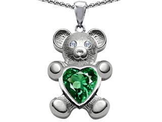 This delightful Original Star K(tm) Love Bear Holding Birthstone of May 8mm Heart Shape Simulated Emerald, crafted in .925 Sterling Silver. This beautiful design is mounted with 1 stone prong set green Heart Shape Simulated Emerald clean clarity. This style measures 14.00 mm wide, 22.00 mm long. Emerald is May Birthstone: From the French 'esmeralde' meaning 'green gem'. A symbol of immortality, it is said to improve memory, wisdom and intuition. Designer: Star K - This beautiful design, is part of the exclusive Star K. jewelry collection. Star K. designs are copyrighted, so please be aware of cheap imitations selling online. Only original Star K. creations are made using the highest quality materials and craftsmanship, backed by an exclusive Lifetime Warranty. Warranty: - This item is covered by Finejewelers exclusive Silver Shield Lifetime Warranty. This exclusive lifetime coverage is offered ONLY by Finejewelers so please shop with confidence, our quality is guaranteed for life!