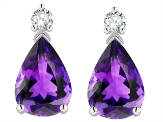 The beautiful Tommaso Design(tm) Genuine 8x6mm Amethyst and Diamond Earrings, available in 14 kt White Gold and 14 kt Yellow Gold. This beautiful design is set with 2 stones 2.30 carats prong set violet Pear Shape Amethyst clean clarity, 2 stones 0.06 carats Round Brilliant Diamond K color I3 clarity Amethyst is February Birthstone: From the Greek 'amethystos' meaning 'sober'. A symbol of trust, Amethyst is thought to protect against seduction and provide peace. Diamond is April Birthstone: From the Greek 'adamas' meaning 'invincible'. A symbol of enduring love, it is believed to bring the wearer luck and success. Made in USA Designer: Tommaso design Studio - This classic design, is made by the renowned Tommaso Design Studio. Tommaso creations are copyrighted, so please be aware of cheap imitations selling online. Only original Tommaso designs are made using the highest quality materials and craftsmanship, backed by an exclusive Lifetime Warranty. Warranty: - This item is covered by Finejewelers exclusive Silver Shield Lifetime Warranty. This exclusive lifetime coverage is offered ONLY by Finejewelers so please shop with confidence, our quality is guaranteed for life!. Metal Available: 14 kt White Gold, 14 kt Yellow Gold.