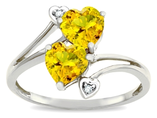 This beautiful Tommaso Design(tm) Heart Shape 6mm Genuine Citrine and Diamond Ring, crafted in 10 kt White Gold. This beautiful design is mounted with 2 stones 1.00 carats prong set medium to dark yellow-orange Heart Shape Citrine, 2 stones 0.01 carats prong set Round Brilliant Diamond K color I3 clarity. This product measures 8.00 mm wide, 14.00 mm long. Citrine is November Birthstone: From the French 'citron' for 'lemon'. A symbol of success, is said to protect against sudden death and increase success and prosperity. Diamond is April Birthstone: From the Greek 'adamas' meaning 'invincible'. A symbol of enduring love, it is believed to bring the wearer luck and success. Made in USA Designer: Tommaso design Studio - This classic design, is made by the renowned Tommaso Design Studio. Tommaso creations are copyrighted, so please be aware of cheap imitations selling online. Only original Tommaso designs are made using the highest quality materials and craftsmanship, backed by an exclusive Lifetime Warranty. Warranty: - This item is covered by Finejewelers exclusive Silver Shield Lifetime Warranty. This exclusive lifetime coverage is offered ONLY by Finejewelers so please shop with confidence, our quality is guaranteed for life!