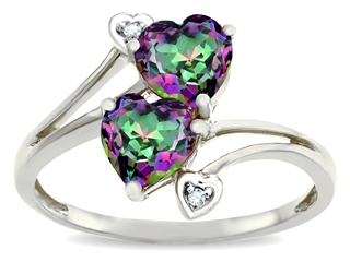 This stunning Tommaso Design(tm) Heart Shape 6mm Rainbow Mystic Topaz and Diamond Ring, crafted in 10 kt White Gold. This beautiful design is set with 2 stones prong set multicolor Heart Shape Mystic Topaz, 2 stones prong set Round Brilliant Diamond K color I3 clarity. This style measures 8.00 mm wide, 14.00 mm long. Diamond is April Birthstone: From the Greek 'adamas' meaning 'invincible'. A symbol of enduring love, it is believed to bring the wearer luck and success. Made in USA Designer: Tommaso design Studio - This classic design, is made by the renowned Tommaso Design Studio. Tommaso creations are copyrighted, so please be aware of cheap imitations selling online. Only original Tommaso designs are made using the highest quality materials and craftsmanship, backed by an exclusive Lifetime Warranty. Warranty: - This item is covered by Finejewelers exclusive Silver Shield Lifetime Warranty. This exclusive lifetime coverage is offered ONLY by Finejewelers so please shop with confidence, our quality is guaranteed for life!
