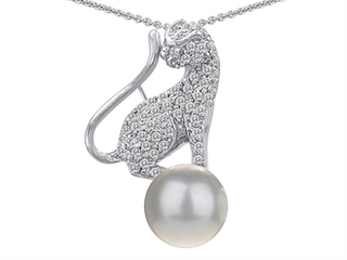 This impressing Original Star K(tm) Cat Pendant With 7mm Simulated White Pearl, crafted in .925 Sterling Silver. This beautiful design is set with 40 stones prong set colorless Round Brilliant Cubic Zirconia. This design measures 16.00 mm wide, 25.00 mm long. Free 18 inches chain included Designer: Star K - This beautiful design, is part of the exclusive Star K. jewelry collection. Star K. designs are copyrighted, so please be aware of cheap imitations selling online. Only original Star K. creations are made using the highest quality materials and craftsmanship, backed by an exclusive Lifetime Warranty. Warranty: - This item is covered by Finejewelers exclusive Silver Shield Lifetime Warranty. This exclusive lifetime coverage is offered ONLY by Finejewelers so please shop with confidence, our quality is guaranteed for life!