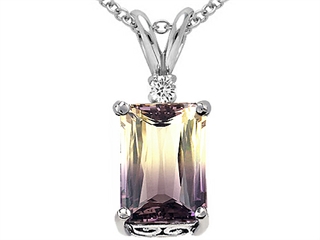 This stunning Original Star K(tm) Genuine Ametrine Pendant, crafted in .925 Sterling Silver. This amazing design is mounted with 1 stone 5.75 carats prong set light violet and yellow Emerald Cut Ametrine clean clarity, 1 stone 0.15 carats prong set colorless Round Brilliant Cubic Zirconia. This product measures 0.50 Inches high, 0.50 Inches wide. Free 18 inches chain included Designer: Star K - This beautiful design, is part of the exclusive Star K. jewelry collection. Star K. designs are copyrighted, so please be aware of cheap imitations selling online. Only original Star K. creations are made using the highest quality materials and craftsmanship, backed by an exclusive Lifetime Warranty. Warranty: - This item is covered by Finejewelers exclusive Silver Shield Lifetime Warranty. This exclusive lifetime coverage is offered ONLY by Finejewelers so please shop with confidence, our quality is guaranteed for life!