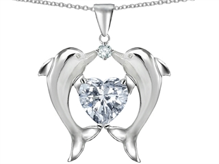 This impressing Original Star K(tm) Kissing Dolphins Pendant With 8mm Heart Shape Genuine White Topaz, crafted in .925 Sterling Silver. This amazing design is mounted with 1 stone prong set colorless Heart Shape White Topaz, 1 stone prong set colorless Round Cubic Zirconia. This design measures 22.00 mm wide, 25.00 mm long. Designer: Star K - This beautiful design, is part of the exclusive Star K. jewelry collection. Star K. designs are copyrighted, so please be aware of cheap imitations selling online. Only original Star K. creations are made using the highest quality materials and craftsmanship, backed by an exclusive Lifetime Warranty. Warranty: - This item is covered by Finejewelers exclusive Silver Shield Lifetime Warranty. This exclusive lifetime coverage is offered ONLY by Finejewelers so please shop with confidence, our quality is guaranteed for life!
