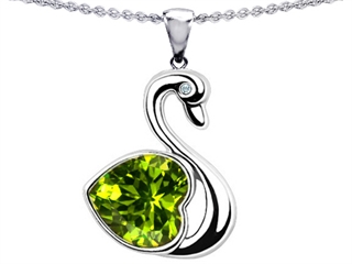 Original Star K(tm) Large Love Swan Pendant With 8mm Genuine Heart Shape Peridot