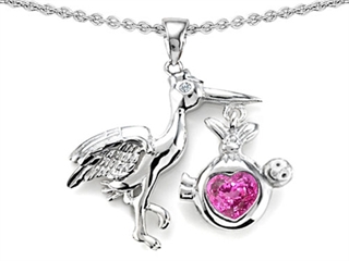The alluring Original Star K(tm) New Baby Stork Mother Pendant with Heart Shape Created Pink Sapphire, crafted in .925 Sterling Silver. This attractive design is set with 1 stone prong set pink Heart Shape Created Pink Sapphire. This product measures 24.00 mm wide, 28.00 mm long. Sapphire is September Birthstone: From the Latin 'sapphirus' meaning 'blue'. A symbol for truth and sincerity, it inspires spiritual enlightenment, health and inner peace. Free 18 inches chain included Designer: Star K - This beautiful design, is part of the exclusive Star K. jewelry collection. Star K. designs are copyrighted, so please be aware of cheap imitations selling online. Only original Star K. creations are made using the highest quality materials and craftsmanship, backed by an exclusive Lifetime Warranty. Warranty: - This item is covered by Finejewelers exclusive Silver Shield Lifetime Warranty. This exclusive lifetime coverage is offered ONLY by Finejewelers so please shop with confidence, our quality is guaranteed for life!