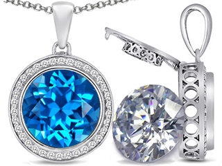 The amazing Switch-It Gems(tm) 2in1 Round 10mm Simulated Blue Topaz Pendant with Interchangeable Simulated Diamond Included, crafted in 925 Sterling Silver. This beautiful design is set with 32 stones channel set colorless Round Brilliant Cubic Zirconia. This product measures 14.00 mm wide, 22.00 mm long. Blue Topaz is December Birthstone: From the Greek 'topazos' meaning 'to seek'. Topaz is said to enhance spiritual potential, intelligence, creativity and wealth. Free 18 inches chain included 2 Round 10mm Simulated Birthstone Included Switch-It Gem(tm) Designs are protected by US Copyright and Patent Laws Warranty: - This item is covered by Finejewelers exclusive Silver Shield Lifetime Warranty. This exclusive lifetime coverage is offered ONLY by Finejewelers so please shop with confidence, our quality is guaranteed for life!