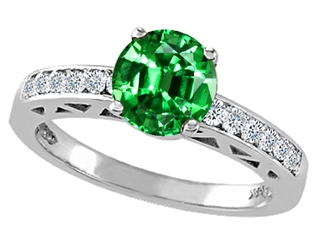 The impressive Tommaso Design(tm) Simulated Emerald And Diamond Solitaire Engagement Ring, crafted in 14 kt White Gold. This beautiful design is mounted with 1 stone prong set green Round Simulated emerald, 12 stones prong set Round Brilliant Diamond K color I3 clarity. This style measures 7.00 mm wide, 7.00 mm long. Emerald is May Birthstone: From the French 'esmeralde' meaning 'green gem'. A symbol of immortality, it is said to improve memory, wisdom and intuition. Diamond is April Birthstone: From the Greek 'adamas' meaning 'invincible'. A symbol of enduring love, it is believed to bring the wearer luck and success. Made in USA Designer: Tommaso design Studio - This classic design, is made by the renowned Tommaso Design Studio. Tommaso creations are copyrighted, so please be aware of cheap imitations selling online. Only original Tommaso designs are made using the highest quality materials and craftsmanship, backed by an exclusive Lifetime Warranty. Warranty: - This item is covered by Finejewelers exclusive Silver Shield Lifetime Warranty. This exclusive lifetime coverage is offered ONLY by Finejewelers so please shop with confidence, our quality is guaranteed for life!