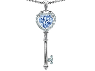 Original Star K(tm) Key To My Heart Love Pendant With 7mm Heart Shape Simulated Aquamarine