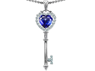 Original Star K(tm) Key To My Heart Love Pendant With 7mm Heart Shape Created Blue Sapphire