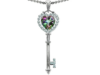 Original Star K(tm) Key To My Heart Love Pendant With 7mm Heart Shape Mystic Rainbow Topaz