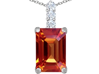 This attractive Original Star K(tm) Large 14x10mm Emerald Cut Simulated Orange Mexican Fire Opal Pendant, crafted in 925 Sterling Silver. This beautiful design is mounted with 1 stone prong set red - orange Emerald Cut Simulated Fire Opal, 3 stones prong set colorless Round Cubic Zirconia. This style measures 10.00 mm wide, 23.00 mm long. Free 18 inches Sterling Silver Chain included Designer: Star K - This beautiful design, is part of the exclusive Star K. jewelry collection. Star K. designs are copyrighted, so please be aware of cheap imitations selling online. Only original Star K. creations are made using the highest quality materials and craftsmanship, backed by an exclusive Lifetime Warranty. Warranty: - This item is covered by Finejewelers exclusive Silver Shield Lifetime Warranty. This exclusive lifetime coverage is offered ONLY by Finejewelers so please shop with confidence, our quality is guaranteed for life!