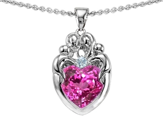 The amazing Original Star K(tm) Loving Mother Twins Family Pendant With 8mm Heart Created Pink Sapphire, crafted in .925 Sterling Silver. This beautiful design is mounted with 1 stone bezel set pink Heart Shape Created Pink Sapphire clean clarity, 1 stone bezel set colorless Round Cubic Zirconia. This style measures 11.00 mm wide, 22.00 mm long. Sapphire is September Birthstone: From the Latin 'sapphirus' meaning 'blue'. A symbol for truth and sincerity, it inspires spiritual enlightenment, health and inner peace. Free 18 inches chain included Designer: Star K - This beautiful design, is part of the exclusive Star K. jewelry collection. Star K. designs are copyrighted, so please be aware of cheap imitations selling online. Only original Star K. creations are made using the highest quality materials and craftsmanship, backed by an exclusive Lifetime Warranty. Warranty: - This item is covered by Finejewelers exclusive Silver Shield Lifetime Warranty. This exclusive lifetime coverage is offered ONLY by Finejewelers so please shop with confidence, our quality is guaranteed for life!