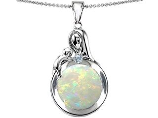 The impressing Original Star K(tm) Loving Mother With Child Family Pendant With Round 10mm Created Opal, crafted in 925 Sterling Silver. This amazing design is mounted with 1 stone bezel set white iridescent Round Created Opal, 1 stone prong set colorless Round Cubic Zirconia. This product measures 14.00 mm wide, 28.00 mm long. Opal is October Birthstone: From the Greek 'opallios', meaning 'colour change'. A symbol of hope and faithfulness, it inspires true love and brings confidence. Free 18 inches chain included Designer: Star K - This beautiful design, is part of the exclusive Star K. jewelry collection. Star K. designs are copyrighted, so please be aware of cheap imitations selling online. Only original Star K. creations are made using the highest quality materials and craftsmanship, backed by an exclusive Lifetime Warranty. Warranty: - This item is covered by Finejewelers exclusive Silver Shield Lifetime Warranty. This exclusive lifetime coverage is offered ONLY by Finejewelers so please shop with confidence, our quality is guaranteed for life!