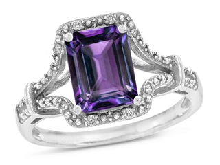 The impressing Tommaso Design(tm) Emerald Cut 8x6mm Simulated Alexandrite and Diamond Ring, available in 14 kt Yellow Gold and 14 kt White Gold. This amazing design is set with 1 stone prong set color change Emerald Cut Simulated Alexandrite, 4 stones prong set Round Brilliant Diamond K color I3 clarity. This design measures 6.00 mm wide, 12.00 mm long. Alexandrite is June Birthstone: Named after Czar Alexander II of Russia, this very rare gem has the ability to change color. A symbol for change, Alexandrite is said to inspire imagination, creativity and confidence. Diamond is April Birthstone: From the Greek 'adamas' meaning 'invincible'. A symbol of enduring love, it is believed to bring the wearer luck and success. Designer: Tommaso design Studio - This classic design, is made by the renowned Tommaso Design Studio. Tommaso creations are copyrighted, so please be aware of cheap imitations selling online. Only original Tommaso designs are made using the highest quality materials and craftsmanship, backed by an exclusive Lifetime Warranty. Warranty: - This item is covered by Finejewelers exclusive Silver Shield Lifetime Warranty. This exclusive lifetime coverage is offered ONLY by Finejewelers so please shop with confidence, our quality is guaranteed for life!. Metal Available: 14 kt Yellow Gold, 14 kt White Gold.