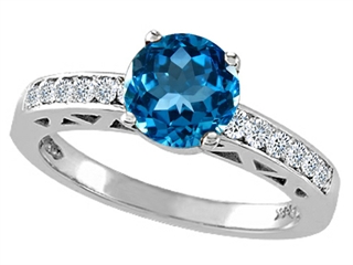 This impressing Tommaso Design(tm) Genuine Blue Topaz and Diamond Solitaire Engagement Ring, crafted in 14 kt White Gold. This beautiful design is set with 1 stone 1.25 carats prong medium to light blue Round Blue Topaz eye clean clarity, 12 stones 0.06 carats prong set Round Brilliant Diamond K color I3 clarity. This design measures 7.00 mm wide, 7.00 mm long. Blue Topaz is December Birthstone: From the Greek 'topazos' meaning 'to seek'. Topaz is said to enhance spiritual potential, intelligence, creativity and wealth. Diamond is April Birthstone: From the Greek 'adamas' meaning 'invincible'. A symbol of enduring love, it is believed to bring the wearer luck and success. Made in USA Designer: Tommaso design Studio - This classic design, is made by the renowned Tommaso Design Studio. Tommaso creations are copyrighted, so please be aware of cheap imitations selling online. Only original Tommaso designs are made using the highest quality materials and craftsmanship, backed by an exclusive Lifetime Warranty. Warranty: - This item is covered by Finejewelers exclusive Silver Shield Lifetime Warranty. This exclusive lifetime coverage is offered ONLY by Finejewelers so please shop with confidence, our quality is guaranteed for life!