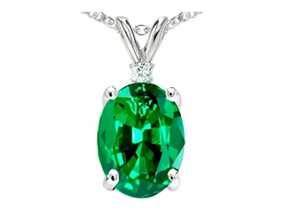 The impressive Tommaso Design(tm) Simulated Emerald And Genuine Diamond Pendant, crafted in 14 kt White Gold. This amazing design is set with 1 stone prong set green Oval Simulated emerald, 1 stone prong set Round Brilliant Diamond K color I3 clarity. This style measures 7.00 mm wide, 14.00 mm long. Emerald is May Birthstone: From the French 'esmeralde' meaning 'green gem'. A symbol of immortality, it is said to improve memory, wisdom and intuition. Diamond is April Birthstone: From the Greek 'adamas' meaning 'invincible'. A symbol of enduring love, it is believed to bring the wearer luck and success. Free 18 inches chain included Designer: Tommaso design Studio - This classic design, is made by the renowned Tommaso Design Studio. Tommaso creations are copyrighted, so please be aware of cheap imitations selling online. Only original Tommaso designs are made using the highest quality materials and craftsmanship, backed by an exclusive Lifetime Warranty. Warranty: - This item is covered by Finejewelers exclusive Silver Shield Lifetime Warranty. This exclusive lifetime coverage is offered ONLY by Finejewelers so please shop with confidence, our quality is guaranteed for life!