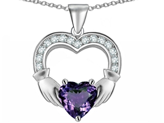 This delightful Celtic Love by Kelly Hands Holding 8mm Heart 1 inch Claddagh Pendant With Simulated Alexandrite, crafted in .925 Sterling Silver. This amazing design is set with 1 stone prong set color change Heart Shape Simulated Alexandrite, 15 stones prong set colorless Round Cubic Zirconia. This product measures 18.00 mm wide, 23.00 mm long. Alexandrite is June Birthstone: Named after Czar Alexander II of Russia, this very rare gem has the ability to change color. A symbol for change, Alexandrite is said to inspire imagination, creativity and confidence. Free 18 inches chain included Warranty: - This item is covered by Finejewelers exclusive Silver Shield Lifetime Warranty. This exclusive lifetime coverage is offered ONLY by Finejewelers so please shop with confidence, our quality is guaranteed for life!
