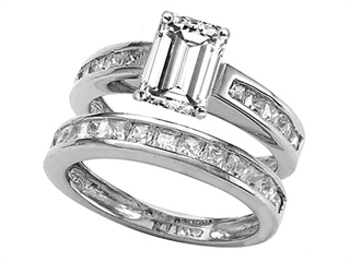 The dazzling Original Star K(tm) 8x6mm Emerald Cut Genuine White Topaz Wedding Set, crafted in .925 Sterling Silver. This amazing design is mounted with 1 stone prong set colorless Emerald Cut White Topaz, 24 stones channel set colorless Princess Cubic Zirconia. This product measures 6.00 mm wide, 8.00 mm long. Designer: Star K - This beautiful design, is part of the exclusive Star K. jewelry collection. Star K. designs are copyrighted, so please be aware of cheap imitations selling online. Only original Star K. creations are made using the highest quality materials and craftsmanship, backed by an exclusive Lifetime Warranty. Warranty: - This item is covered by Finejewelers exclusive Silver Shield Lifetime Warranty. This exclusive lifetime coverage is offered ONLY by Finejewelers so please shop with confidence, our quality is guaranteed for life!