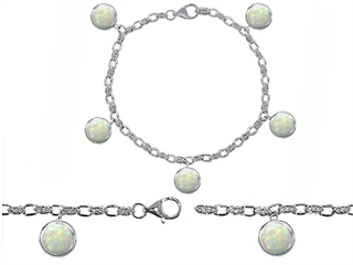 This amazing Original Star K(tm) High End Tennis Charm Bracelet With 5pcs 7mm Round Created Opal, crafted in .925 Sterling Silver. This attractive design is mounted with 5 stones bezel set white iridescent Round Created Opal, 79 stones prong set colorless Round Cubic Zirconia. This design measures 0.25 Inches wide, 7.50 Inches long. Opal is October Birthstone: From the Greek 'opallios', meaning 'colour change'. A symbol of hope and faithfulness, it inspires true love and brings confidence. Designer: Star K - This beautiful design, is part of the exclusive Star K. jewelry collection. Star K. designs are copyrighted, so please be aware of cheap imitations selling online. Only original Star K. creations are made using the highest quality materials and craftsmanship, backed by an exclusive Lifetime Warranty. Warranty: - This item is covered by Finejewelers exclusive Silver Shield Lifetime Warranty. This exclusive lifetime coverage is offered ONLY by Finejewelers so please shop with confidence, our quality is guaranteed for life!