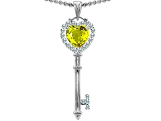 Original Star K(tm) Key To My Heart Love Pendant With 7mm Heart Shape Simulated Yellow Sapphire