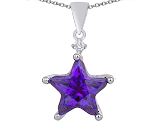 The dazzling Original Star K(tm) Large 14mm Fancy Star Pendant with Simulated Amethyst, crafted in 925 Sterling Silver. This amazing design is mounted with 1 stone prong set violet Star Shape Simulated Amethyst clean clarity, 1 stone prong set colorless Round Cubic Zirconia clean clarity. This design measures 17.00 mm wide, 26.00 mm long. Amethyst is February Birthstone: From the Greek 'amethystos' meaning 'sober'. A symbol of trust, Amethyst is thought to protect against seduction and provide peace. Free 18 inches chain included Designer: Star K - This beautiful design, is part of the exclusive Star K. jewelry collection. Star K. designs are copyrighted, so please be aware of cheap imitations selling online. Only original Star K. creations are made using the highest quality materials and craftsmanship, backed by an exclusive Lifetime Warranty. Warranty: - This item is covered by Finejewelers exclusive Silver Shield Lifetime Warranty. This exclusive lifetime coverage is offered ONLY by Finejewelers so please shop with confidence, our quality is guaranteed for life!