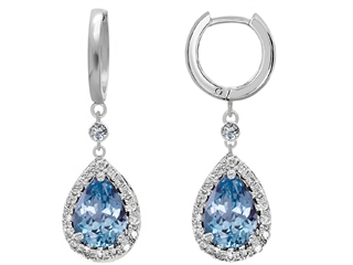 This impressive Original Star K(tm) Pear Shape 9x7mm Simulated Aquamarine Drop Earrings Dangling On Huggie Hoop, crafted in 925 Sterling Silver. This beautiful design is set with 2 stones prong set faint blue Pear Shape Simulated Aquamarine clean clarity, 32 stones prong set colorless Round Brilliant Cubic Zirconia. This design measures 11.00 mm wide, 26.00 mm long. Aquamarine is March Birthstone: From the latin `aqua` and `mare` meaning 'sea water'. Aquamarine is said to provide everlasting youth, courage, and happiness. Designer: Star K - This beautiful design, is part of the exclusive Star K. jewelry collection. Star K. designs are copyrighted, so please be aware of cheap imitations selling online. Only original Star K. creations are made using the highest quality materials and craftsmanship, backed by an exclusive Lifetime Warranty. Warranty: - This item is covered by Finejewelers exclusive Silver Shield Lifetime Warranty. This exclusive lifetime coverage is offered ONLY by Finejewelers so please shop with confidence, our quality is guaranteed for life!