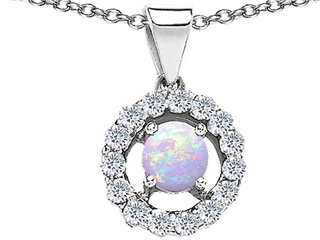 The alluring Original Star K(tm) Round Created Opal Pendant, crafted in 925 Sterling Silver. This amazing design is mounted with 1 stone prong set white iridescent Round Created Opal, 15 stones prong set colorless Round Cubic Zirconia. This product measures 16.00 mm wide, 25.00 mm long. Opal is October Birthstone: From the Greek 'opallios', meaning 'colour change'. A symbol of hope and faithfulness, it inspires true love and brings confidence. Free 18 inches chain included Designer: Star K - This beautiful design, is part of the exclusive Star K. jewelry collection. Star K. designs are copyrighted, so please be aware of cheap imitations selling online. Only original Star K. creations are made using the highest quality materials and craftsmanship, backed by an exclusive Lifetime Warranty. Warranty: - This item is covered by Finejewelers exclusive Silver Shield Lifetime Warranty. This exclusive lifetime coverage is offered ONLY by Finejewelers so please shop with confidence, our quality is guaranteed for life!