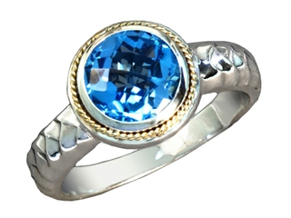 The beautiful Balissima By Effy Collection Sterling Silver and 18k Yellow Gold Blue Topaz Ring, crafted in 925 Silver and 18k Yellow Gold. This beautiful design is set with 1 stone bezel set blue Round Blue Topaz eye clean clarity Blue Topaz is December Birthstone: From the Greek 'topazos' meaning 'to seek'. Topaz is said to enhance spiritual potential, intelligence, creativity and wealth. Warranty: - This item is covered by Finejewelers exclusive Silver Shield Lifetime Warranty. This exclusive lifetime coverage is offered ONLY by Finejewelers so please shop with confidence, our quality is guaranteed for life!